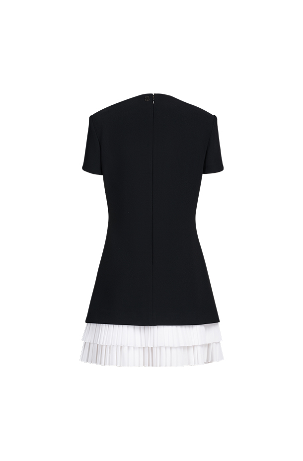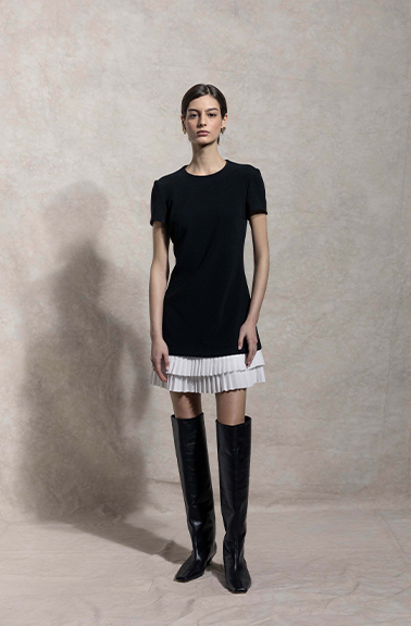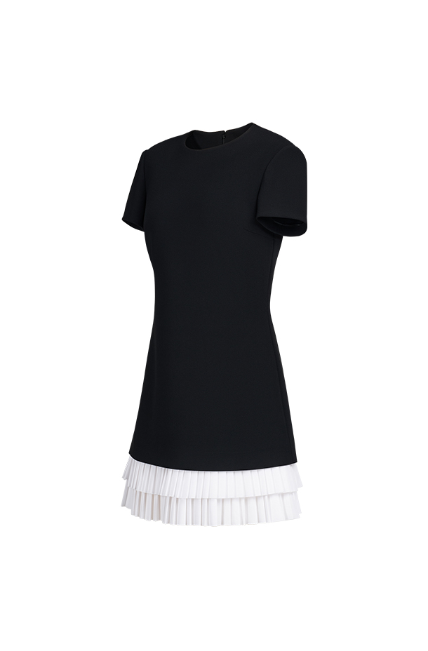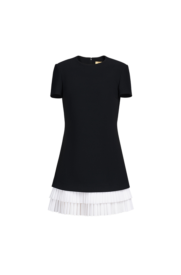 弹力针织面料柔软亲肤,穿着自在无束缚。轻盈A字剪裁自然修饰腰胯曲线,展现利落优雅身姿。裙摆白色百褶增添层次感与动态美,活泼且柔美。低调黑色结合运动面料,兼具休闲感与时尚韵味。面料A:聚酯纤维95% 氨纶5%面料B:聚酯纤维65% 棉35%里料:醋纤65% 聚酯纤维35%