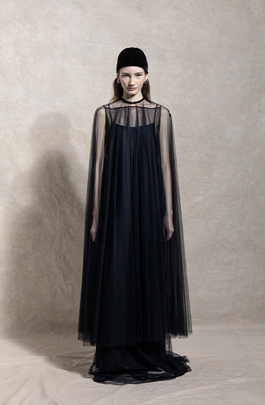 ③ 衣身公主线两侧采用CURIEL特色升级版弹力针织丝绒面料,为整体造型增添了一份柔美与
