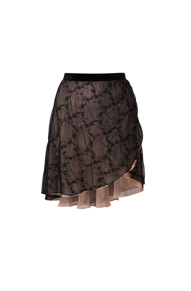 ② 黑色刺绣图案融入了CURIEL的logo,与粉色网纱的撞色设计,为整体造型增添了一份复