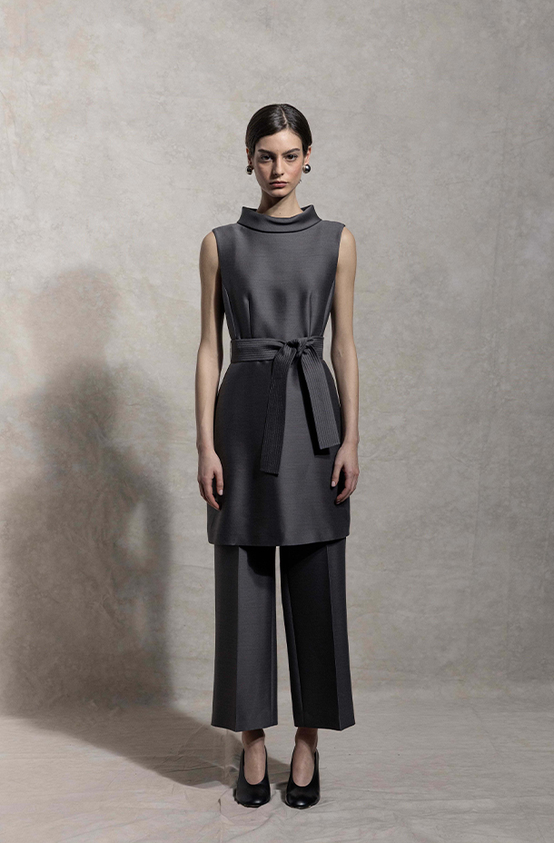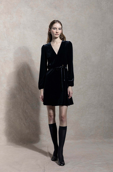 HEPBURN经典版型短款连衣裙,丝毛混纺材质,精致优雅。生丝与羊毛交织,丝绸光泽与羊毛温暖,多角度呈现高级质感。50年代经典裙型,意式弧线剪裁考究精致。翻边领立体有型,衬托颈部优美线条。面料:绵羊毛90% 桑蚕丝10%里料:铜氨纤维100%
