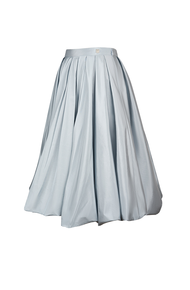 这款海盐蓝色长款云朵裙以双层设计独具匠心,外层轻盈的面料覆盖在里层之上,巧妙地营造出梦幻的云朵效果· 高密度丝绸和涤纶塔夫塔混纺面料· 温柔清冷的海盐蓝色低调又日常,适合多种场合的穿着· 裙摆随着每一步轻盈摆动,宛如云朵般飘逸,令穿着者在任何场合都能自信而迷人