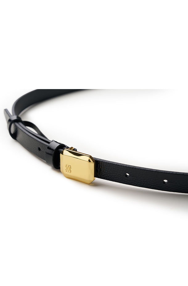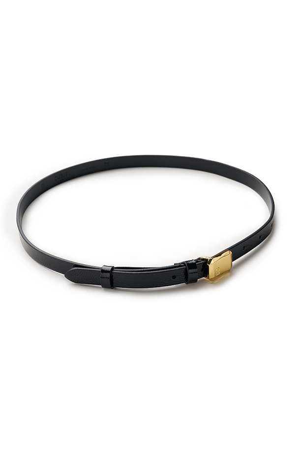 漆皮方扣窄腰带