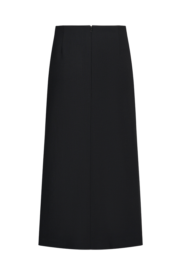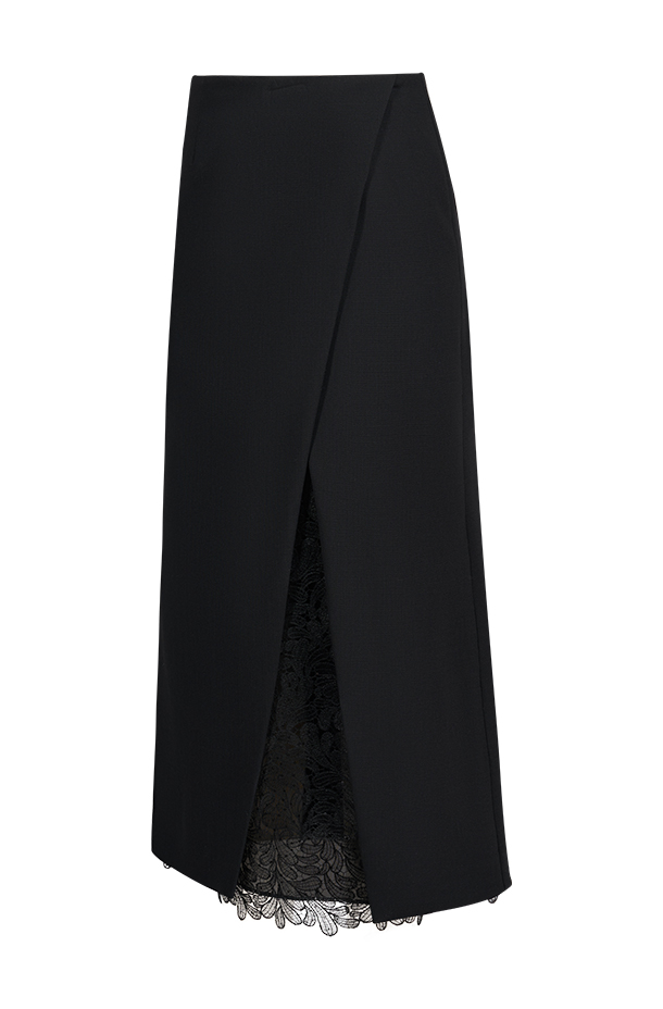 经典黑色长款半裙,低调高级。开衩处精致蕾丝内里,若隐若现增添柔美韵味。长款剪裁修饰腿部线条,行走间自然飘逸。面料A:绵羊毛95% 氨纶5%面料B:聚酯纤维68% 锦纶32%里料:桑蚕丝100%