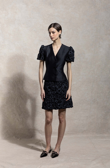 立体花卉肌理面料,层次丰富,增添艺术感与设计感。